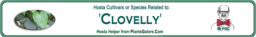 | 'Clovelly' | Hybrid | 'Split Decision' | 'Split Decision' | Terpening, Kent | (GENETIC BACKGROUND) 'Split Decision', 'Split Personality' ++(SIMILAR.HOSTAS) 'Cutting Edge', 'Devon Discovery', 'Split Decision', 'Split Personality' |