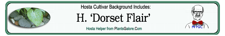 | 'Dorset Flair' | Hybrid | 'Tardiflora' | 'Elegans' | Smith, Eric & Ruh, Peter | (GENETIC BACKGROUND) 'Elegans', Hosta longipes, Hosta longipes lancea, 'Sieboldiana', 'Tardiflora', 'Tokudama', 'Tardiflora' ++(TYPE) Tardiana ++(SIMILAR.HOSTAS) 'Hadspen Blue' |