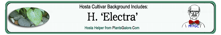 (GENETIC BACKGROUND) 'Electra' ++(TYPE) 'Fortunei' ++(STABLE.FORM.of) 'Electra' ++(SIMILAR.HOSTAS) 'Fortunei Hyacinthina', 'Wayne'
