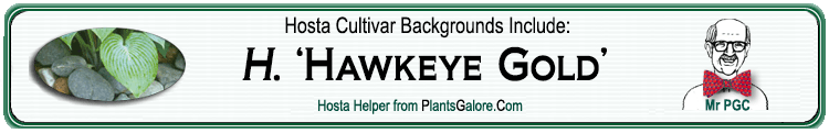 | 'Hawkeye Gold' | Sport | 'Gold Edger' | - | Simmering, Ron | (GENETIC BACKGROUND) 'Aden No. 359', 'Aden No. 381', 'Blue Cadet', 'Gold Cadet', 'Gold Edger', Hosta nakaiana (Possibly), 'Tokudama' ++(SIMILAR.HOSTAS) 'Drip Drop', 'Hawkeye', 'Radiant Edger' |