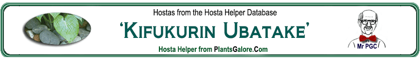 | 'Kifukurin Ubatake' | Sport | Hosta pulchella | - | Unknown & Ruh, Peter | (GENETIC BACKGROUND) Hosta pulchella ++(SIMILAR.HOSTAS) 'Gaijin', 'Gekko' |