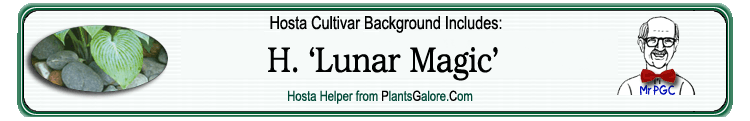 | 'Lunar Night' | Sport | 'Lunar Magic' | - | Lydell, Ransom | (GENETIC BACKGROUND) 'August Moon', 'Lunar Magic', 'Lunar Orbit' ++(SIMILAR.HOSTAS) 'Hub City' |