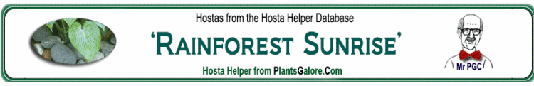 | 'Rainforest Shooting Stars' | Sport | 'Rainforest Sunrise' | - | Owens, William & Owens, Jean | (GENETIC BACKGROUND) 'August Moon', 'Elegans', 'Frances Williams', 'Maui Buttercups', 'Rainforest Sunrise', 'Sieboldiana' |