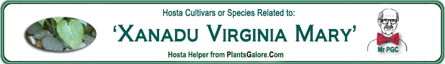 | 'Xanadu Virginia Mary' | Unknown | - | - | Skaggs, Virginia & Skaggs, Brian | (SIMILAR.HOSTAS) 'Kisuji' |