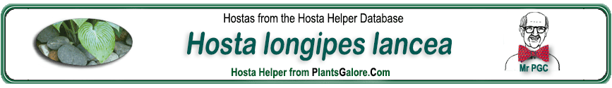 | 'Anglo Saxon' | Hybrid | 'Crepe Suzette' | 'Halcyon' | Malloy, Alex | (GENETIC BACKGROUND) 'Crepe Suzette', 'Elegans', 'Flamboyant', 'Halcyon', Hosta longipes, Hosta longipes lancea, 'Sieboldiana', 'Tardiflora' ++(SIMILAR.HOSTAS) 'Fortunei Aureomarginata' |