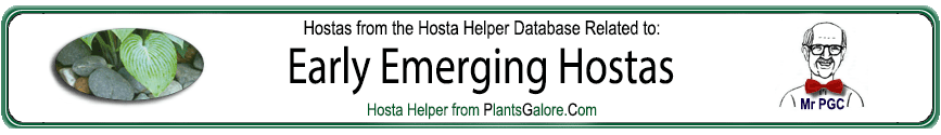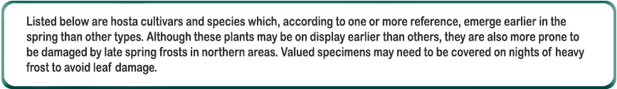 | 'Aureomarginata', H. montana | Large | Med-Green | Marginal | Yellow | Sport | Pale-Lavender | July | Maekawa, Dr Fumio & The American Hosta Society | .1987 |