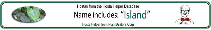 | 'Island Forest Gem' | Large | Dark-Green | | | Unknown | Pale-Lavender | July | Carpenter, Kate & Walek, Kevin & The American Hosta Society | .2009 |