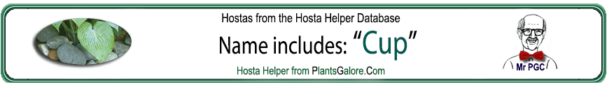 | 'Lakeside Cupid's Cup' | Medium | Med-Green | Marginal | White | Hybrid | Pale-Lavender | June to July | Chastain, Mary | .1998 |