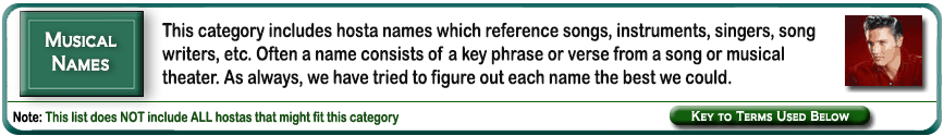 | 'Admiral Halsey' | - The Beatles | Large | Dark-Green | Marginal | White | Sport | Med-Lavender | June to July | Wasitis, Chick & Walek, Kevin & The American Hosta Society | .2009 |