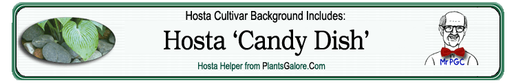 | 'Candy Dish' (Housworth) | Unknown | - | - | Housworth, Jere | ++(SAME.NAME) 'Candy Dish' (Summers) and 'Candy Dish' (Hawes) ++(INFO.SOURCE: The Genus Hosta) |