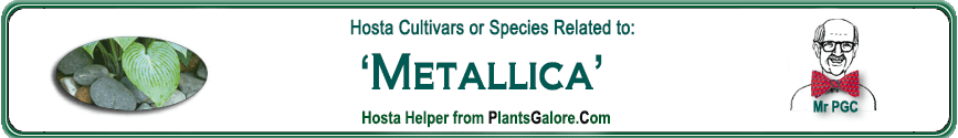 | 'Metallica' | Hybrid | 'Beatrice' seedling | 'Blue Moon' | Lachman, Wm & Lachman, Eleanor | (GENETIC BACKGROUND) 'Beatrice', 'Blue Moon', 'Elegans', Hosta longipes, Hosta longipes lancea, 'Sieboldiana', 'Tardiflora' ++(TYPE) Tardiana ++(SIMILAR.HOSTAS) 'Blue Dimples', 'Lakeside Old Smokey', 'Neptune' |