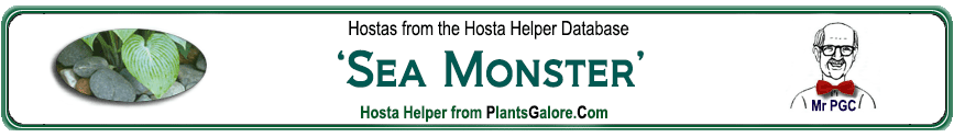 | 'American Monster' | Hybrid | 'Sea Monster' | Unknown | Wade, Van | (GENETIC BACKGROUND) 'Brookwood Blue', 'Sea Monster', 'Sieboldiana' ++(SIMILAR.HOSTAS) 'Sea Monster' |
