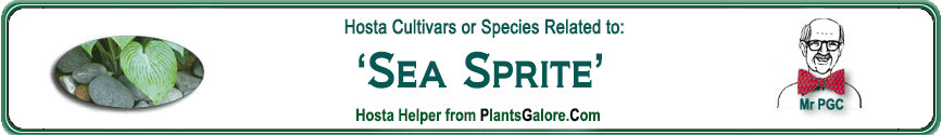 | 'Sea Nymph' | Hybrid | 'Sea Sprite' | Unknown | Seaver, Mildred | (GENETIC BACKGROUND) 'Kabitan', 'Sea Sprite', Hosta sieboldii |