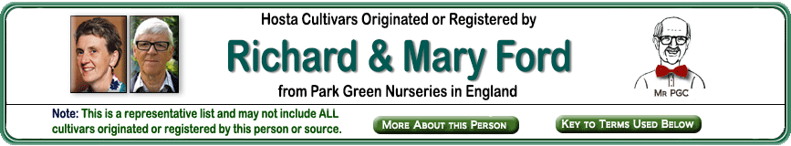 | 'Terry Wogan' | Medium | Blue/Green | | | Sport | Pale-Lavender | August | Ford, Richard & Ford, Mary | .2006 |