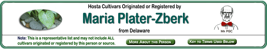 | 'Pike's Peak' | Medium | Yellow | | | Unknown | Unknown | July to August | Plater-Zyberk, Maria & Walek, Kevin & The American Hosta Society | .2009 |