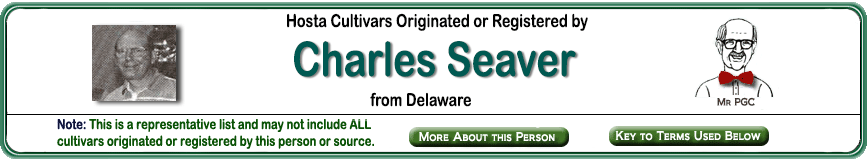 | 'Tentacles' | Medium | Med-Green | | | Hybrid | Pale-Lavender | August | Seaver, Charles | .1996 |