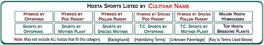| 'Afternoon Delight' | 'High Noon' | Zilis, Mark | (GENETIC BACKGROUND) ++(SIMILAR.HOSTAS) 'Climax' |