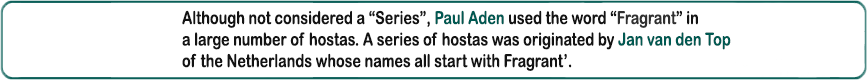 | 'Fragrant Blue' | Large | Blue/Green | | | Hybrid | Pale-Lavender | August | Vaughn, Kevin & Aden, Paul | .1988 |