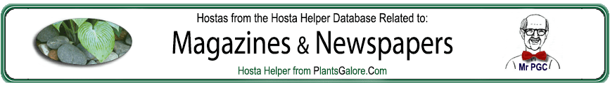 | 'Golden Memories' | Large | Yellow | | | TC Sport | Near-White | July | Vaughn, Kevin & Walek, Kevin & The American Hosta Society | .2009 |