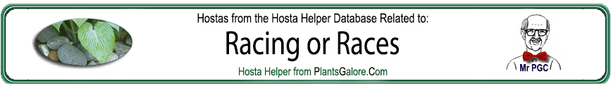 | 'Indy Winners' Circle' | Medium | Yellow | Marginal | Green | Sport | Near-White | August | Dove, Bill & Dove, Wanda & Indianapolis Hosta Society | .2006 |