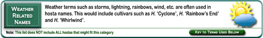 | 'Azure Frost' | Large | Blue/Green | | | Unknown | Near-White | June to July | Treichel, Bernie | .2006 |