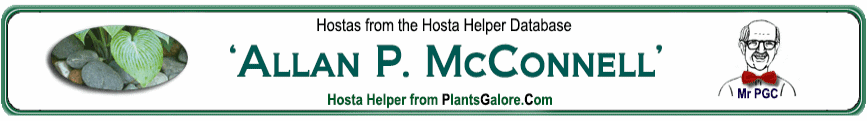 | 'Ivory Pixie' | Sport | 'Allan P. McConnell' | - | Seaver, Mildred | (GENETIC BACKGROUND) 'Allan P. McConnell' ++(SIMILAR.HOSTAS) 'Island Charm' |