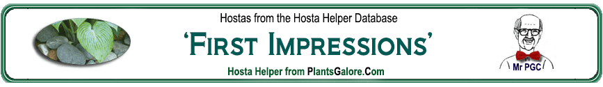 | 'Lasting Impressions' | Hybrid | 'First Impressions' | Hosta hypoleuca | Elslager, Ed | (GENETIC BACKGROUND) 'Decorata, 'First Impressions', 'Goddess of Athena', Hosta hypoleuca |