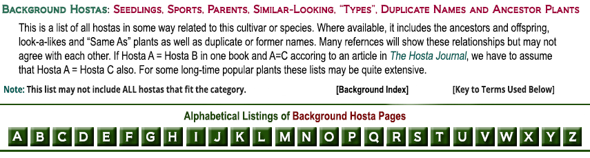 | 'Hoosier Harmony' | Large | Yellow | Marginal | Green | TC Sport | Pure-White | August | Indianapolis Hosta Society & Zilis, Mark | .1995 |