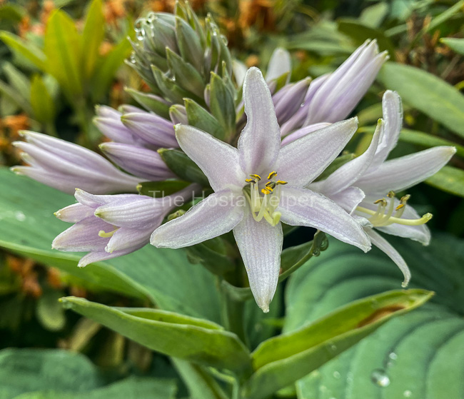 42 inch tall scapes from June into July. It is originally registered as a hybrid of H. 'Tokudama' × H. 'Elegans'