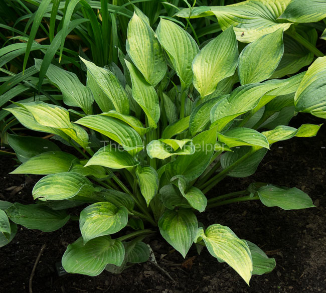 growing, medium size hosta with yellow-green leaves and yellow medial
