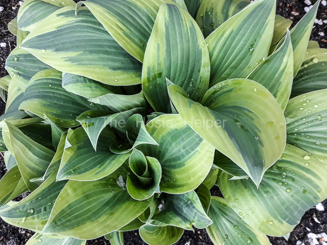 (12 inches high by 30 inches wide) hosta with a good growth rate and high contrast between