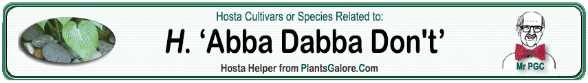 | 'Abba Dabba Don't' | Sport | 'Abba Dabba Do' | - | Summers, Alex | (GENETIC BACKGROUND) 'Abba Dabba Do', 'Aden No. 217', 'Aden No. 219', 'Sun Power' ++(SIMILAR.HOSTAS) 'Abba at Large', 'Abba Dabba Darling', 'Paradise Power' |