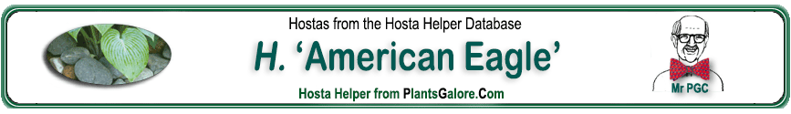 | 'American Eagle' | Sport | 'Zounds' | - | Wade, Van | (GENETIC BACKGROUND) 'Golden Cadet', 'Golden Prayers', 'Golden Waffles', 'Zounds' ++(SIMILAR.HOSTAS) 'Gilded Cup', 'Laura and Darrell' |