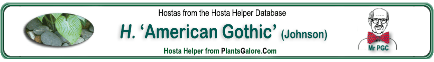 (GENETIC BACKGROUND) 'Blue Arrow', 'Elegans', Hosta longipes, Hosta longipes lancea, 'Sieboldiana', 'Tardiflora' ++(SAME.NAME) 'American Gothic' (Bielstein)