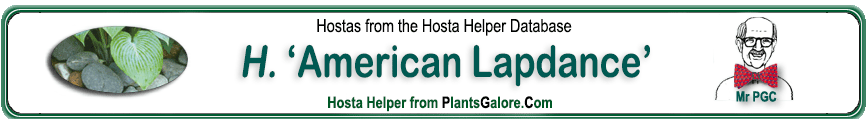 | 'Lapdance' | Sport | 'Striptease' | - | Karbula, Steve | (GENETIC BACKGROUND) 'Fortunei', 'Fortunei Hyacinthina', 'Gold Standard', 'Striptease' ++(SIMILAR.NAME) 'American Lapdance', 'Lap Dance' ++(SIMILAR.HOSTAS) 'Shining Tot', 'Tiny Tears' |