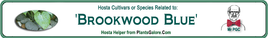 | 'Sea Blue Monster' | Hybrid | 'Brookwood Blue' | Unknown | Seaver, Mildred | (GENETIC BACKGROUND) 'Brookwood Blue', 'Sieboldiana' ++(SIBLING.by.HYBRID) 'Sea Monster' ++(SIMILAR.HOSTAS) 'Helen Doriot' |