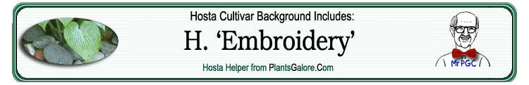 (GENETIC BACKGROUND) 'Embroidery' ++(SIMILAR.HOSTAS) 'Elatior', 'Hirao Majesty', 'Hirao Supreme'