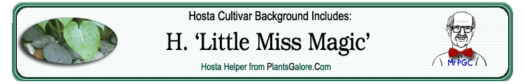 | 'Little Miss Magic' | Hybrid | 'Estrellita' | 'Tardiflora' | Solberg, Robert | (GENETIC BACKGROUND) 'Emerald Ripples', 'Estrellita', 'Fortunei', 'Fortunei Albopicta', Hosta longipes, Hosta longipes lancea, 'Maya', 'Subcrocea', 'Tardiflora' |