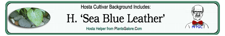 | 'Sea Blue Leather' | Unknown | - | - | Seaver, Mildred & Walek, Kevin & The American Hosta Society | (SIMILAR.HOSTAS) 'Lakeside Sapphire Pleats', 'Sea Blue', 'Sea Grotto' |