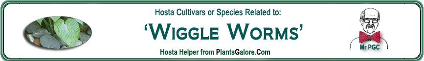 | 'Wiggle Worms' | Unknown | - | - | Draper, Glen & Walek, Kevin & The American Hosta Society | (SIMILAR.HOSTAS) 'Stiletto' |