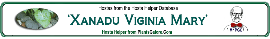 | 'Xanadu Virginia Mary' | Unknown | - | - | Skaggs, Virginia & Skaggs, Brian | (SIMILAR.HOSTAS) 'Kisuji' |