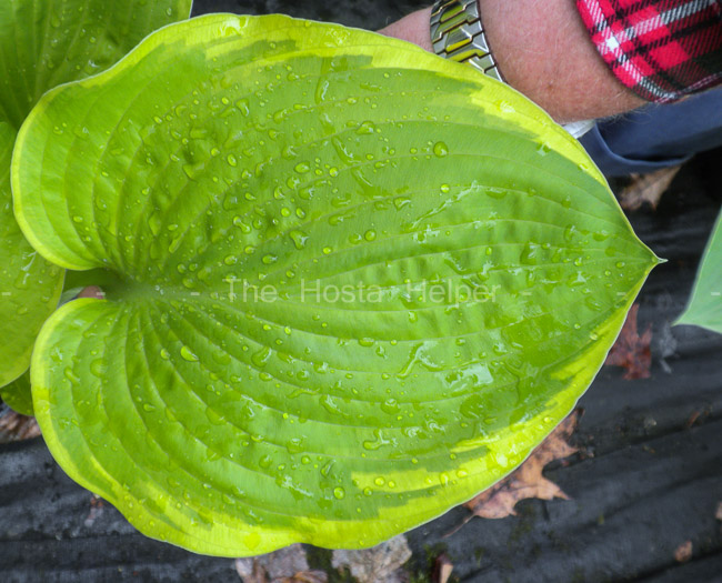 around 29 inches. A medium green hosta with pale yellow
