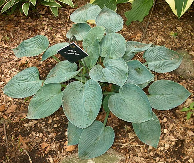 Carl Betcher. It is a seedling of H. 'Tokudama' with a leaf blade that turns upward on the edges and has near