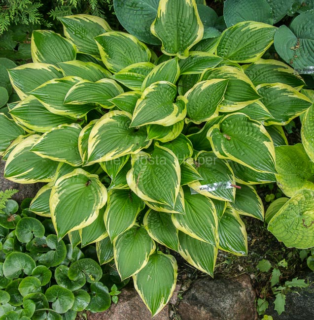 Originated by Herb and Gladys King of Wisconsin, this non-registered cultivar is of unidentified parentage. It is a medium size hosta with green foliage and a creamy yellow marginal variegation.