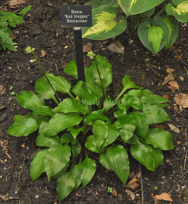 According to The Hostapedia by Mark Zilis (2009), "...unusually shiny green foliage that conveys a plastic like appearance. The petioles are bright red, especially in the lower half."