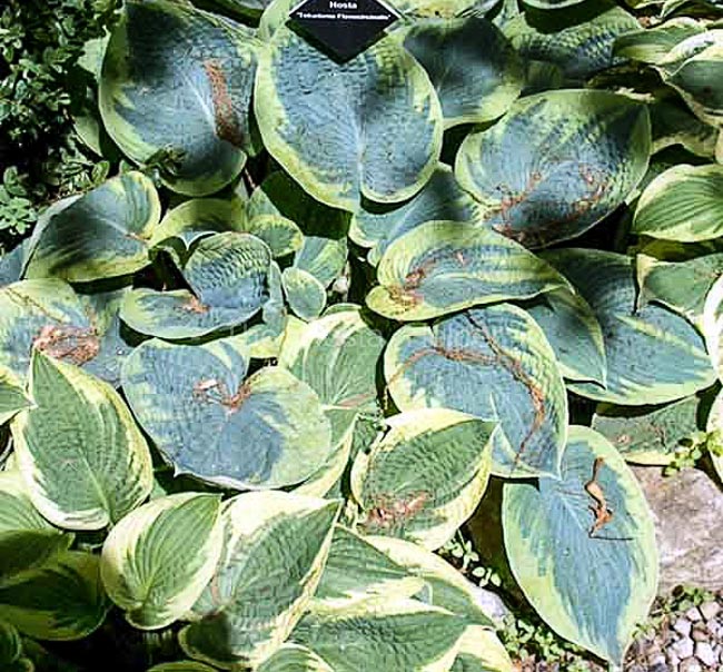 - H. 'Alvatine Taylor' is a large blue-leaved hosta with gold