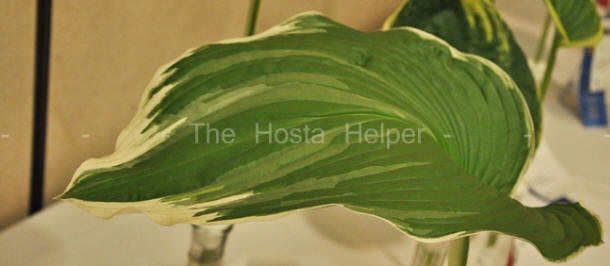 Kevin Walek (Hosta Registrar) in 2009. Its leaves are green with an irregular white marginal variegation. The large