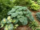 According to The American Hosta Society, there are three base colors for hostas: Green, Blue-Green and Yellow. A base color is the hue that covers at least 60% of the leaf surface. Of course, some variegated hostas may have white covering the majority of the leaf surface but that is not considered an official base color. Other Image galleries include: Variegated Hostas and Hosta Flowers.