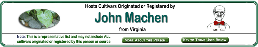 | 'Cherry Pie' | Medium | Med-Green | Medial | White | Sport | Light-Purple | August to September to October | Machen, John | --NR-- |