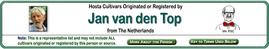 | 'Dream Queen' | 3 | 2 | 2 | 0 | 6 | Van den Top, Jan & The American Hosta Society | .2020 |